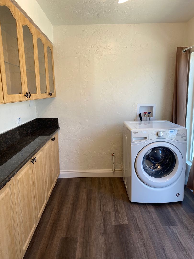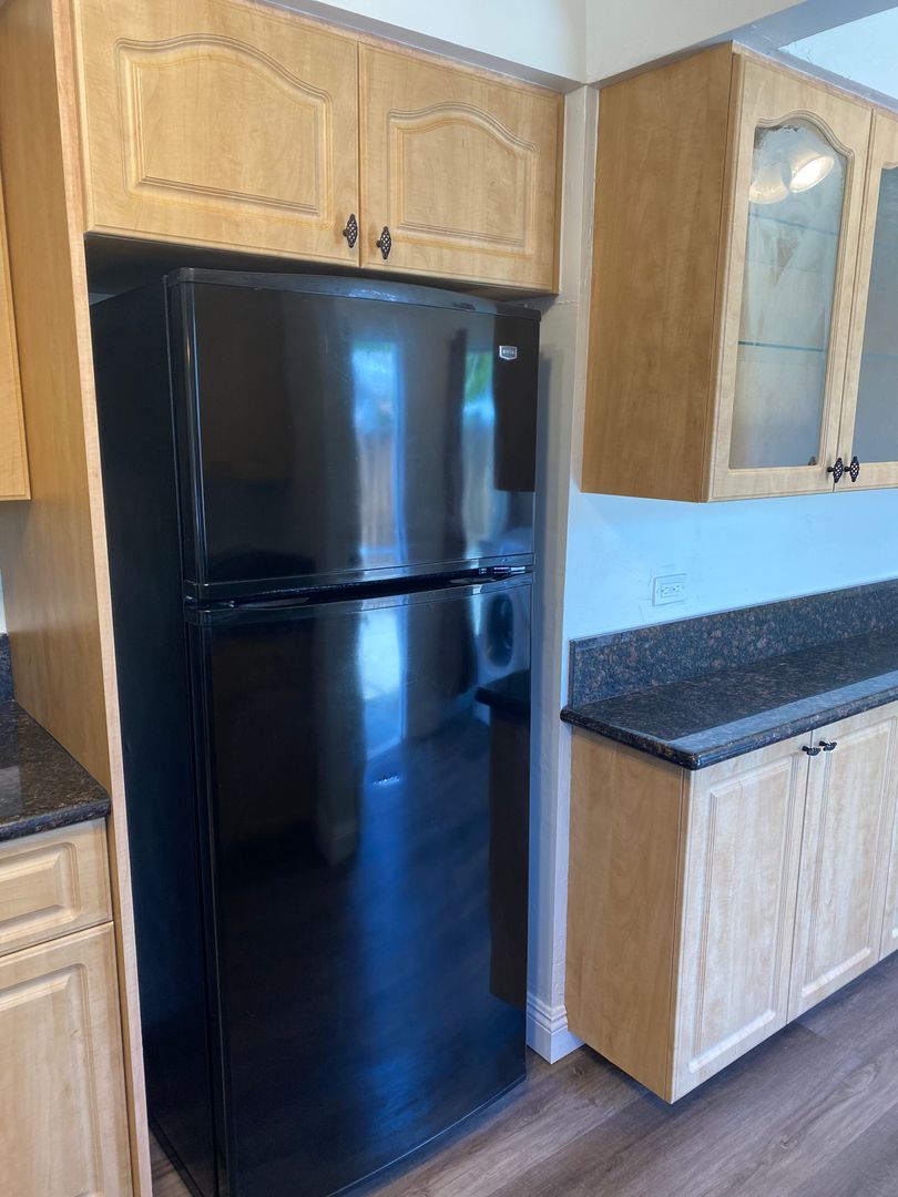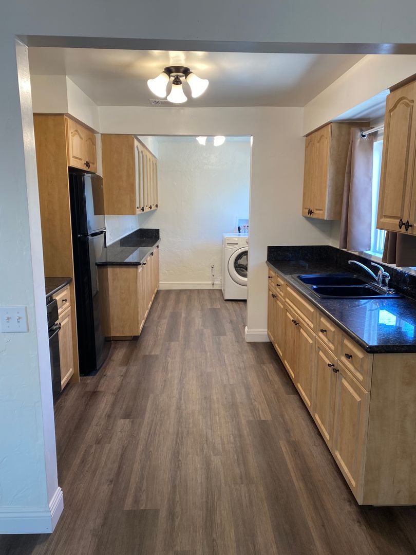 451 N. Martin Street, Banning, CA-Quaint 1 bedroom, 1 bath home, updated kitchen with granite counter tops gas stove top and electric oven included, refrigerator and washer dryer included without warranty, ample cabinets, indoor laundry area, dining room, remodeled bathroom has over size walk in shower. New HVAC system with central air and heat. Fenced in yard, with a 14 X 11 shed for additional storage. Low yard maintenance. Owner pays for monthly yard maintenance, tenant responsible for watering existing landscaping and fruit trees. Garage excluded. Tenant pays all utilities.